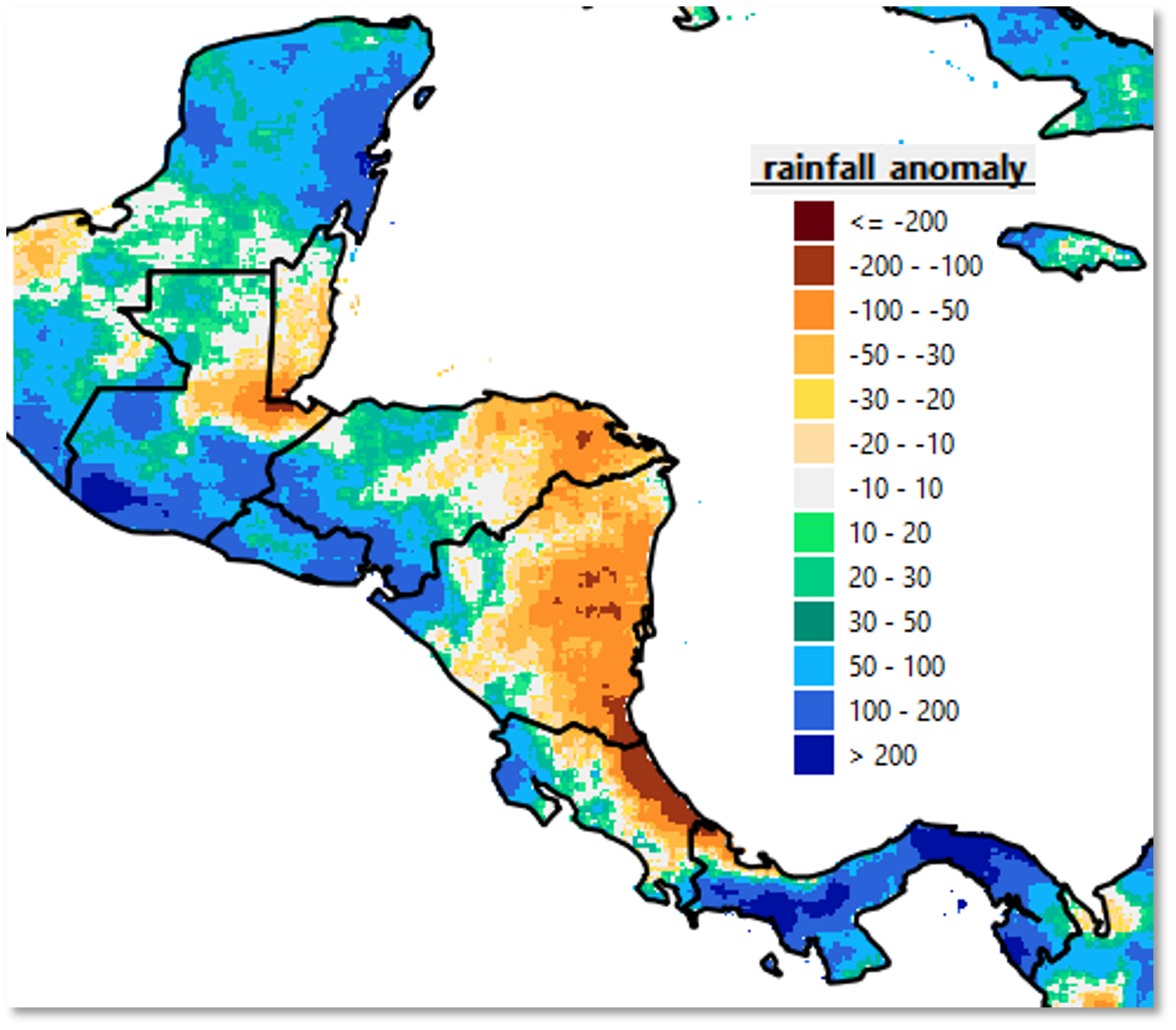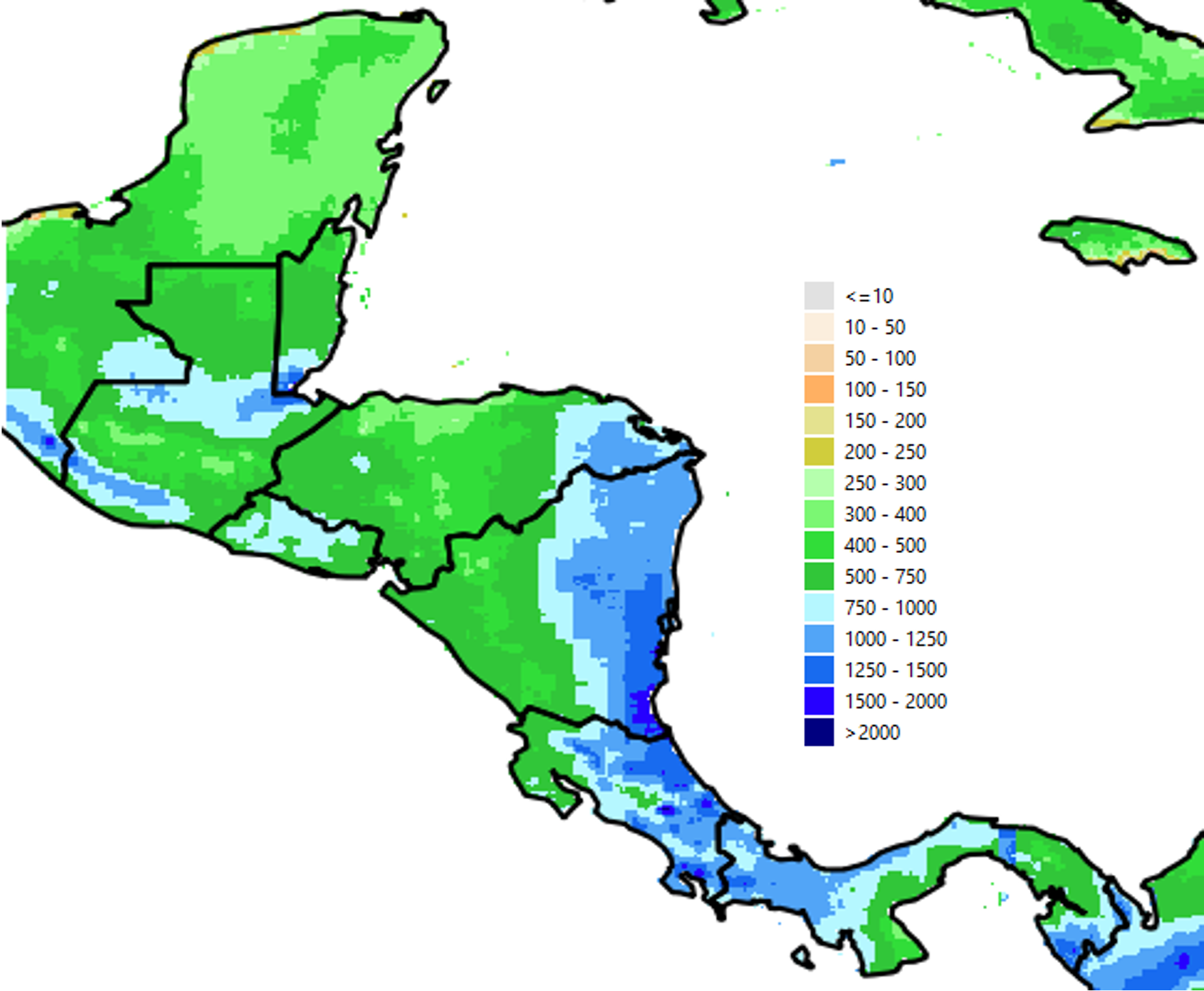 Figure 6-3 Average rainfall for El Niño years in Central America for the May - July season, composite 1.