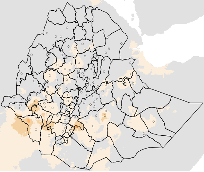 Un conjunto de datos de cuadrícula con valores que varían continuamente en el espacio (por ejemplo, una cuadrícula de estimación de precipitaciones basada en satélites o un promedio climático). Para que el algoritmo se utilice de forma eficaz, los dos conjuntos de datos deben estar correlacionados.