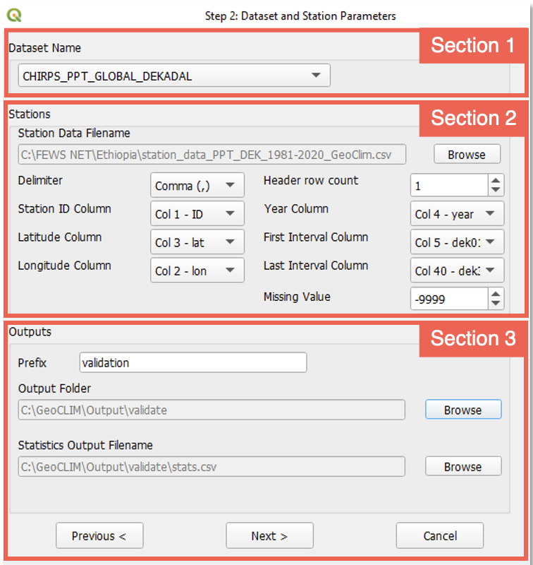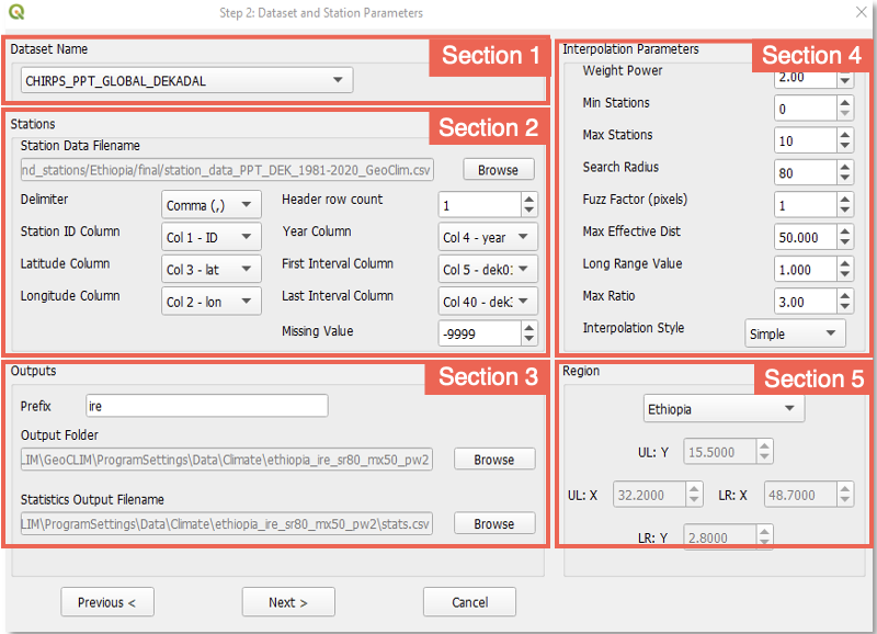 9.1.2. Paso 2: Parámetros del conjunto de datos y de la estación