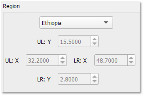 El intervalo de tiempo (por ejemplo, mes, decadias o pentadas) para el dataset ráster seleccionado se muestra automáticamente.